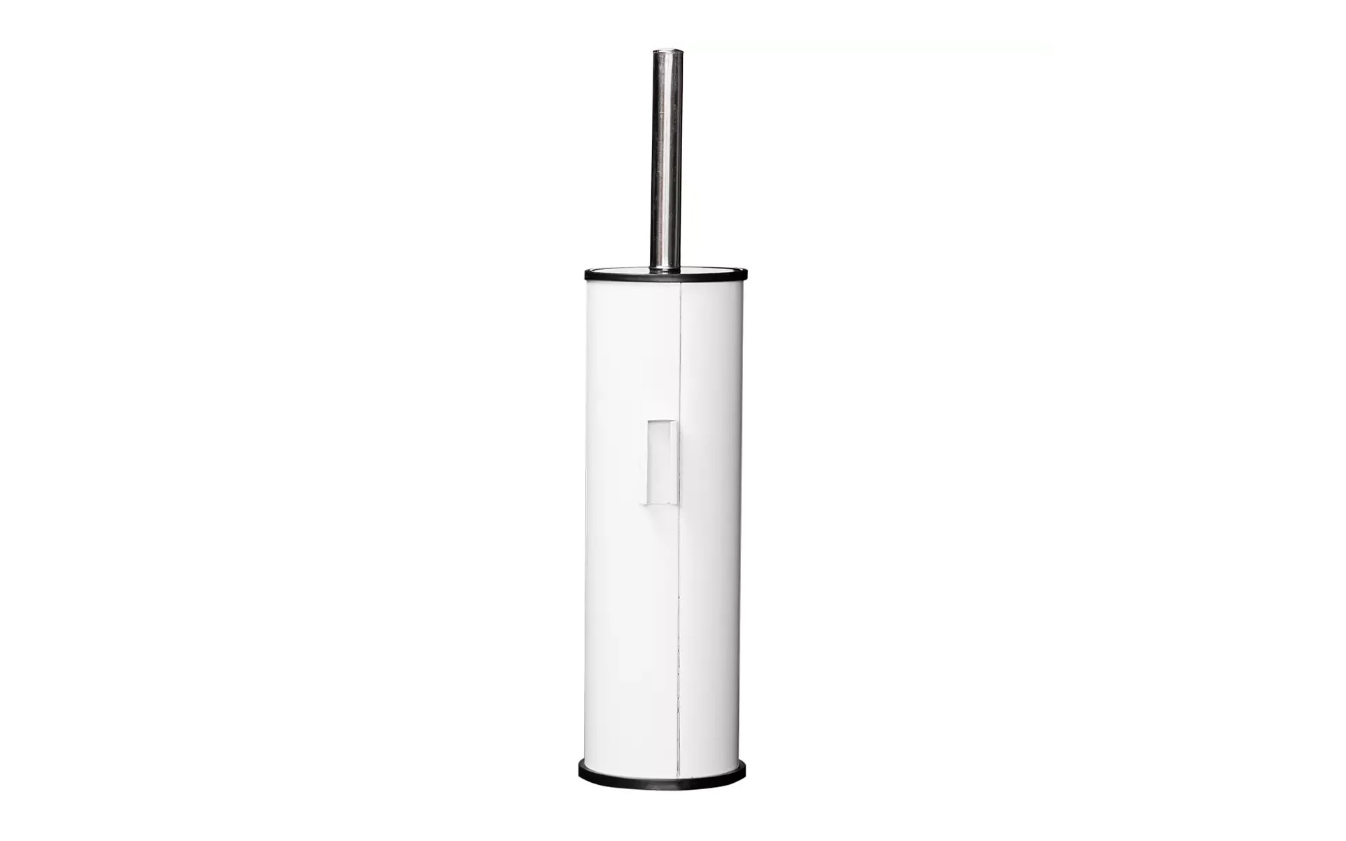 Biała szczotka do WC ze srebrnym wykończeniem to połączenie trwałości i elegancji. Naścienna szczotka jest idealnym uzupełnieniem całej czarnej serii akcesoriów łazienkowych. Nadaje się zarówno toalet w przestrzeni publicznej jak i łazienek w luksusowych hotelach czy restauracjach. Szczególnie polecana do loftowych obiektów, gdzie króluje stal malowana na biało.