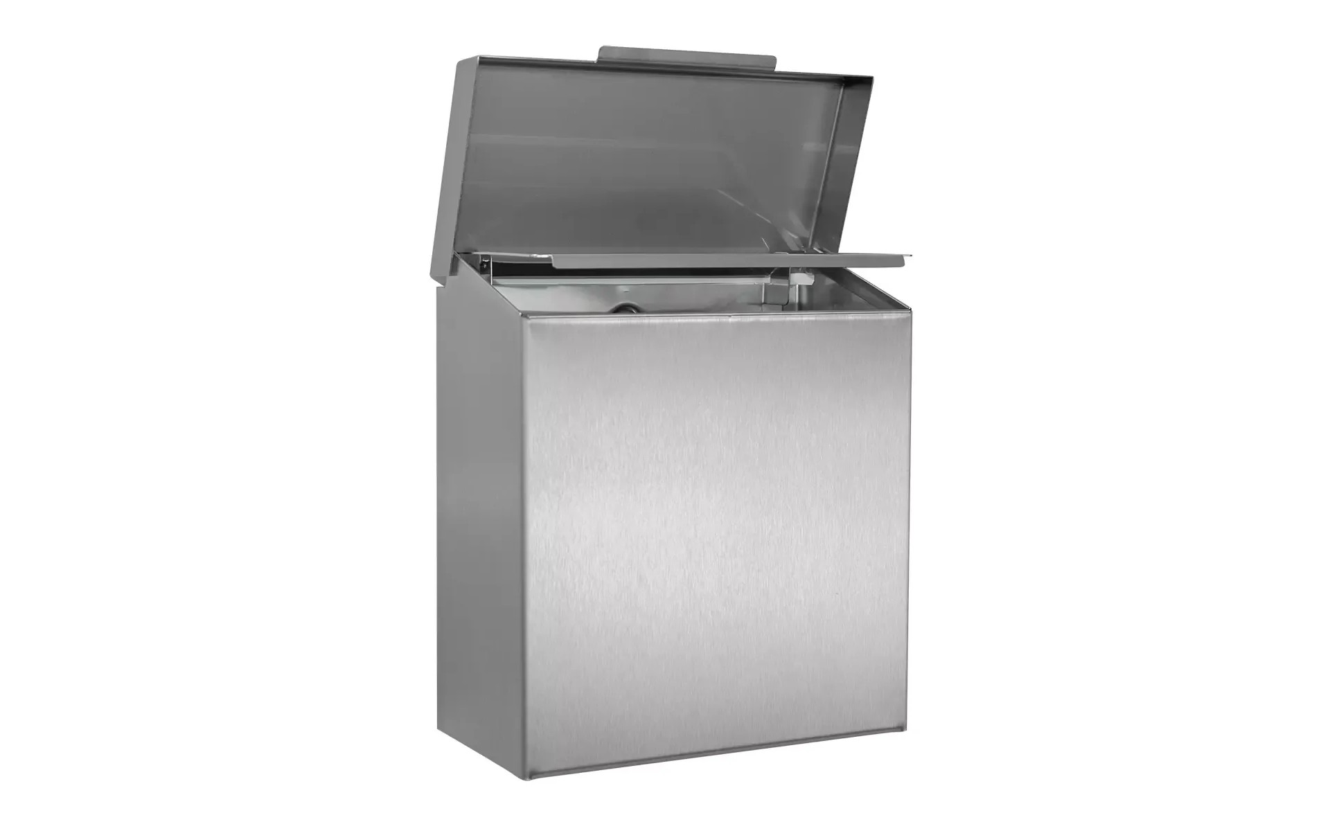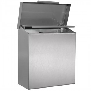 Kosz na odpadki higieniczne do toalet damskich o pojemności 4,2 l został wykonany ze stali nierdzewnej. Ergonomiczny model kosza z pokrywą przeznaczony do użytkowania w damskich toaletach. Kompatybilny z serią LUNA, możliwość montażu zapobiega kradzieży przez co kosz jest przeznaczony przede wszystkim do toalet publicznych narażonych na wandalizm i o dużym przepływie użytkowników.