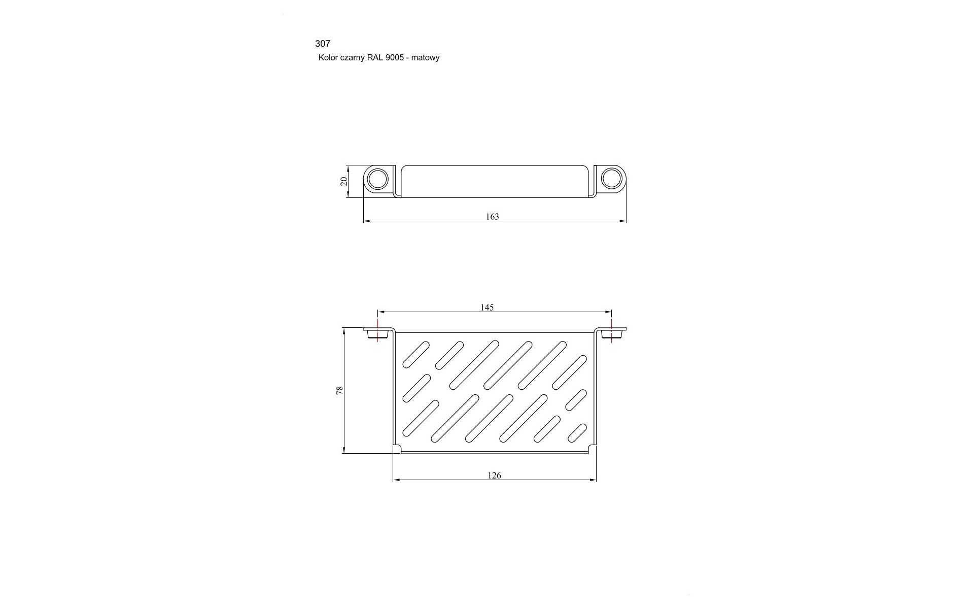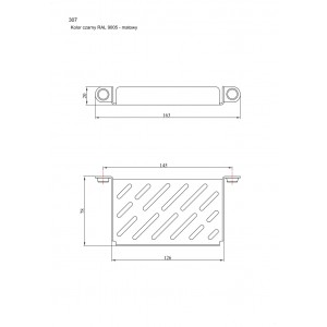 Wykonana ze stali nierdzewnej malowanej na kolor czarny matowy. Mydelniczka ażurowa, umożliwia odpływ wody. Mocowana do ściany za pomocą śrub i kołków (w zestawie).