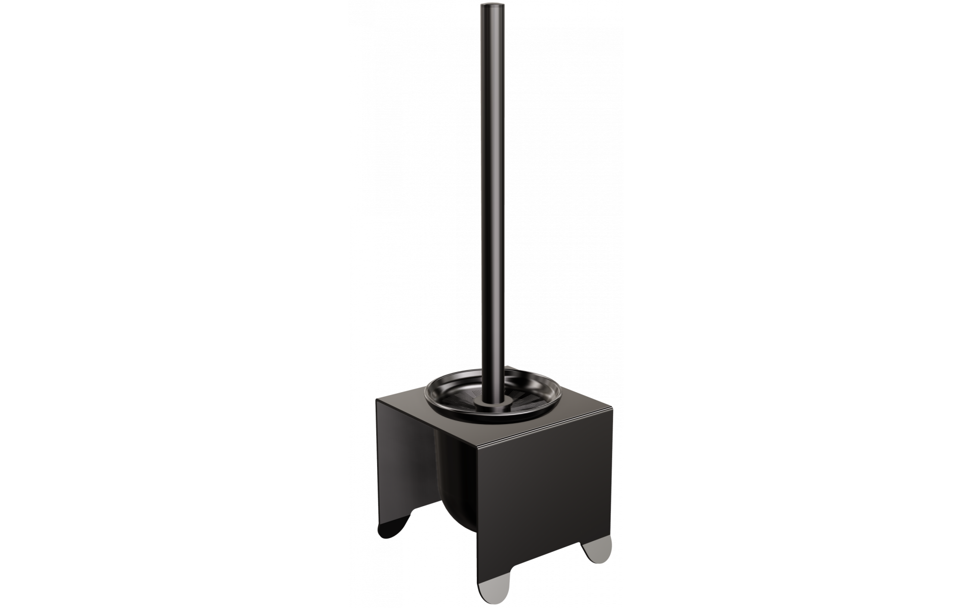 Czarna szczotka toaletowa stojąca. Produkt wykonany ze stali nierdzewnej malowanej na kolor czarny matowy.