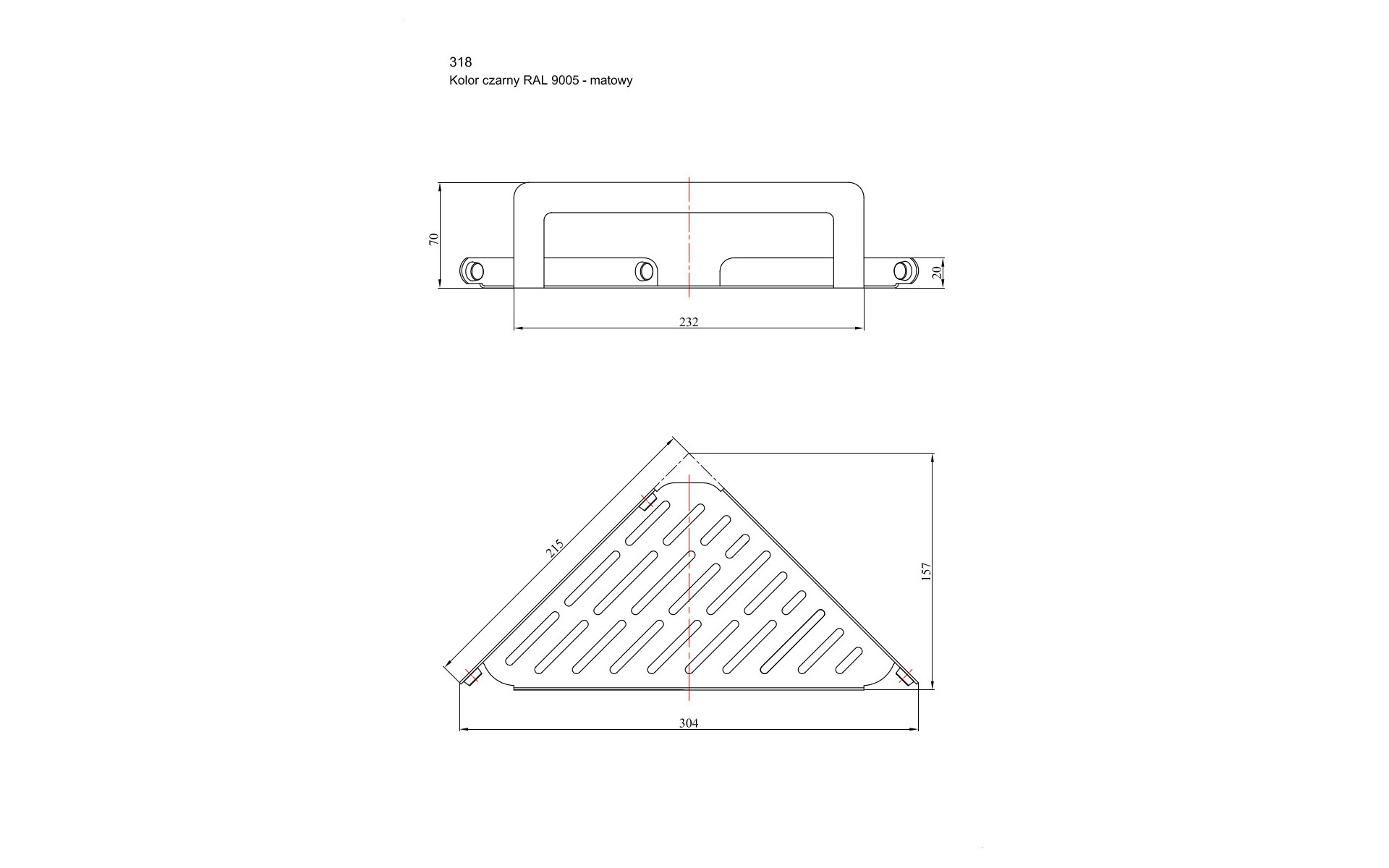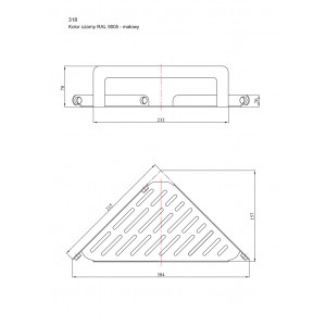 Wykonany ze stali nierdzewnej. Praktyczny koszyk pod prysznic na kosmetyki i przybory higieniczne. Mocowany w rogu strefy prysznicowej - oszczędza miejsce. Mocowany do ściany za pomocą śrub i kołków (w zestawie).