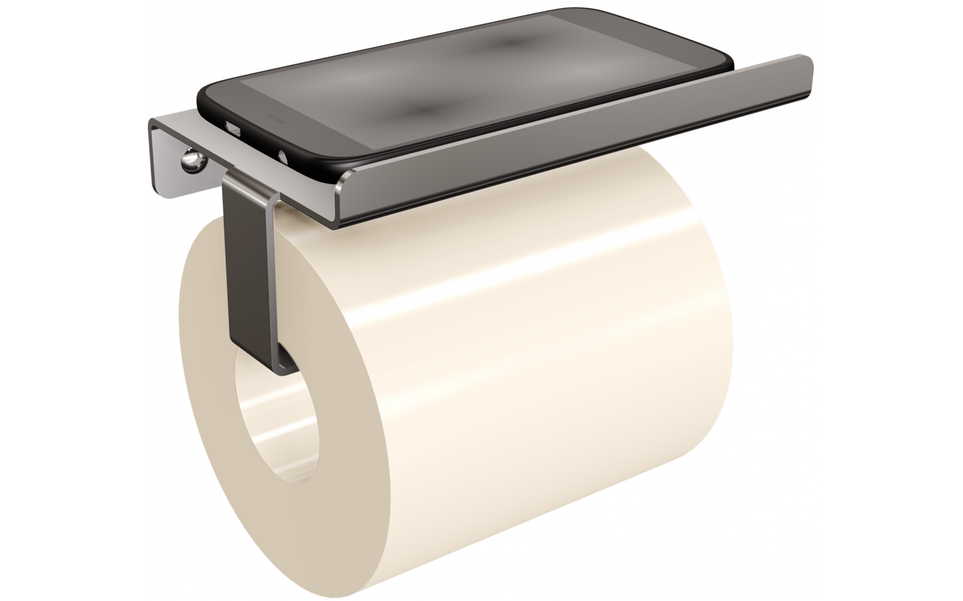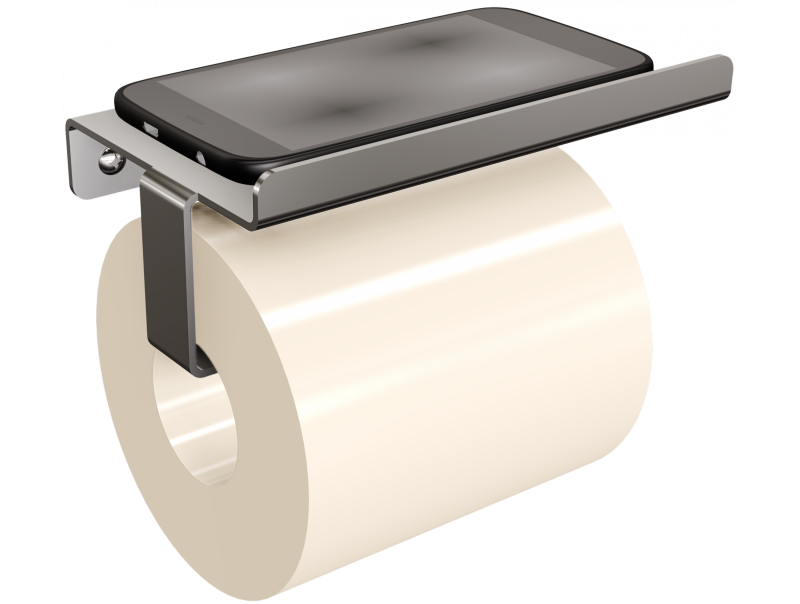 - Wieszak na papier posiada dodatkowo półkę, która może zostać wykorzystana do położenia np. smartfona. Wymiary półki dostosowane zostały do większości modeli smartfonów dostępnych na rynku.
