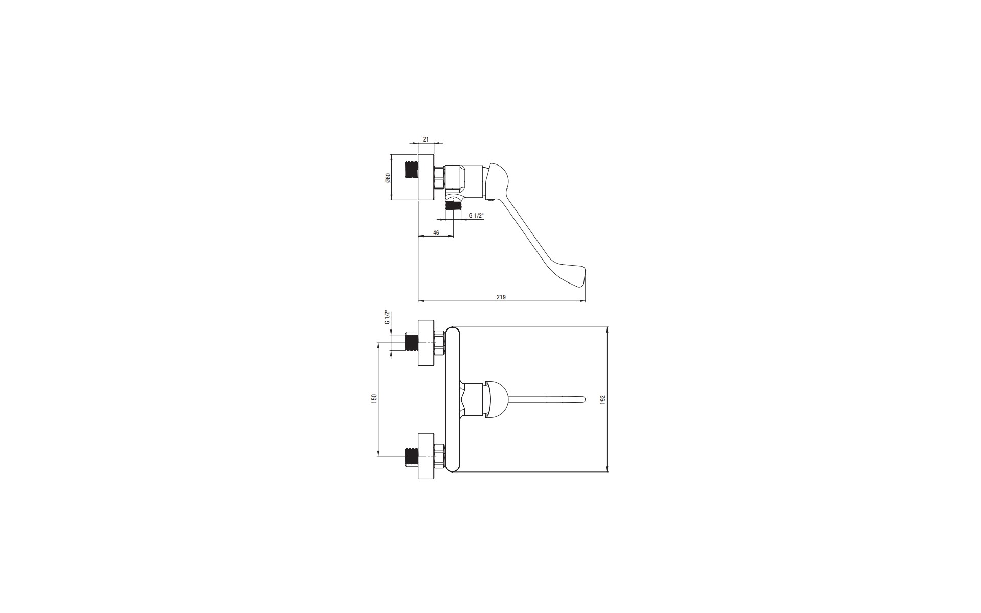 Bateria natryskowa Alpinia Vital - w wersji z dźwignią łokciową (kliniczną), bez kompletu natryskowego. Głowica ceramiczna 35mm. 7 lat gwarancji.
