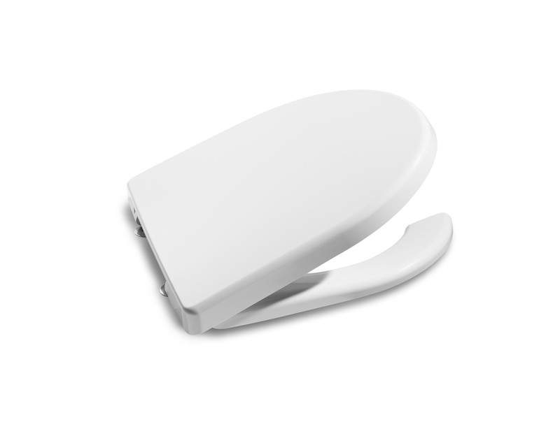 Deska sedesowa z wycięciem w przedniej części, przeznaczona do użytkowania z miską sedesową Roca Dostępna Łazienka. Wykonana z antybakteryjnego Duroplastu.
