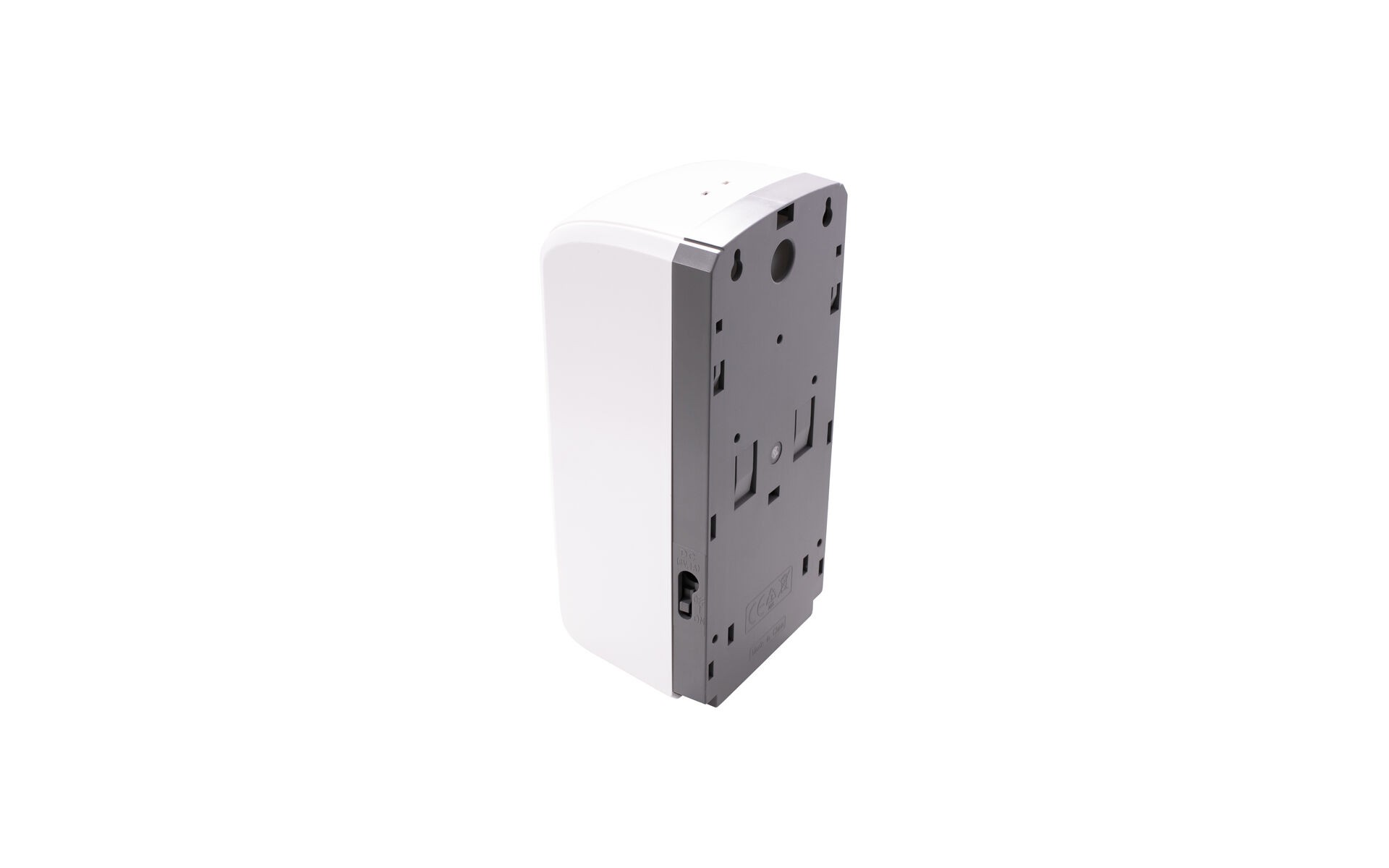 Bezdotykowy podajnik do mydła w pianie jest bardzo mocnym i odpornym na uszkodzenia naściennym elementem wyposażenia toalet publicznych, który wykonano ze tworzywa ABS. To zgrabny, nowoczesny i funkcjonalny element wyposażenia toalet w przestrzeni wspólnej. Dzięki dużej pojemności świetnie pasuje do pomieszczeń o wysokim natężeniu ruchu. Okienko umożliwia sprawne kontrolowanie poziomu mydła wewnątrz dozownika, a wskaźnik poziomu baterii ułatwia planowanie serwisu.