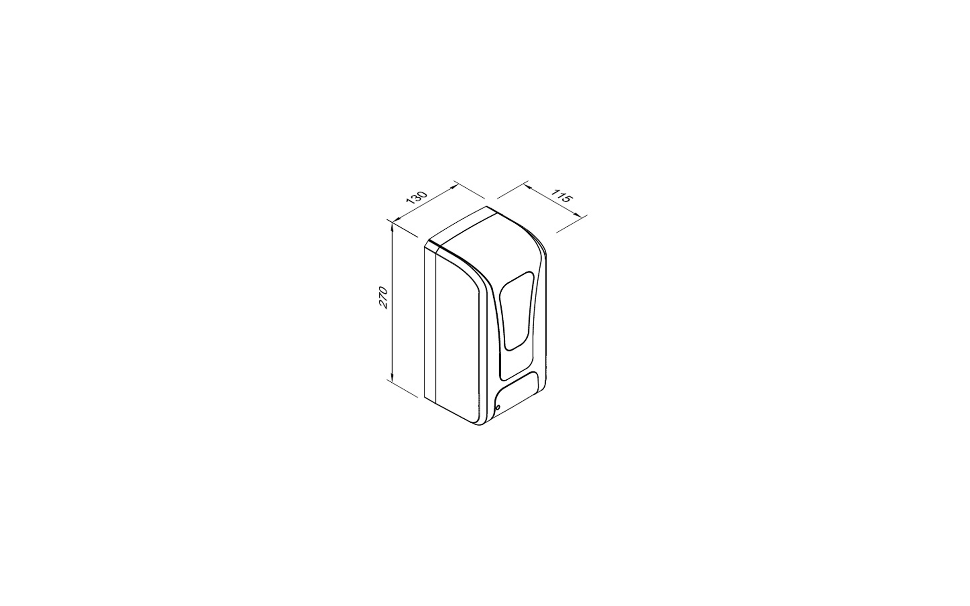 - Wymiary dozownika: Wysokość 270 mm, szerokość 130 mm, głębokość 115 mm