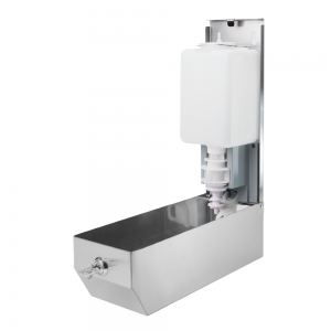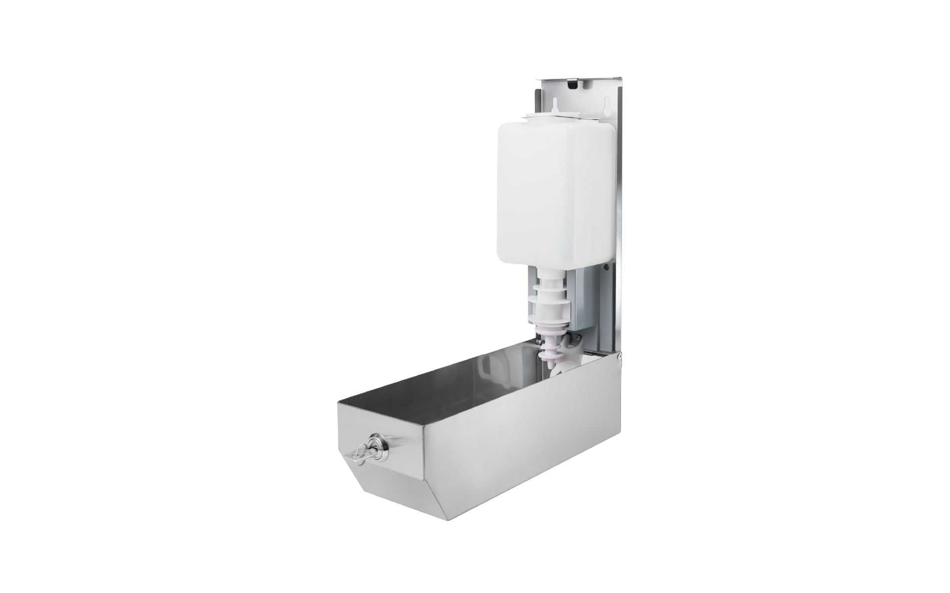 Dozownik mydła w pianie 1 l HIT jest bardzo mocnym i odpornym na uszkodzenia naściennym podajnikiem, który wykonano ze stali nierdzewnej matowej. To elegancki, nowoczesny i funkcjonalny element wyposażenia toalet publicznych. Dzięki dużej pojemności świetnie pasuje do pomieszczeń o wysokim natężeniu ruchu. Okienko umożliwia sprawne kontrolowanie poziomu mydła wewnątrz dozownika, a ergonomiczny przycisk gwarantuje komfort jego użytkowania.