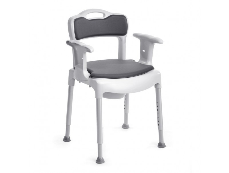 Etac Swift Commode to wygodne, bezpieczne i praktyczne krzesło prysznicowo-toaletowe, które sprawdzi się w Twojej łazience jako asystent wielu czynności. Może także pełnić funkcję toalety przyłóżkowej. Rewelacyjna jakość wykonania i przemyślane rozwiązania sprawiają, że tym krzesłem można cieszyć się przez wiele lat. Jest to rozwiązanie wielofunkcyjne, 3 w 1. Przemyślany, innowacyjny projekt pozwala zaoszczędzić czas, pieniądze i miejsce w łazience, a przy tym gwarantuje wysoki komfort użytkowania.