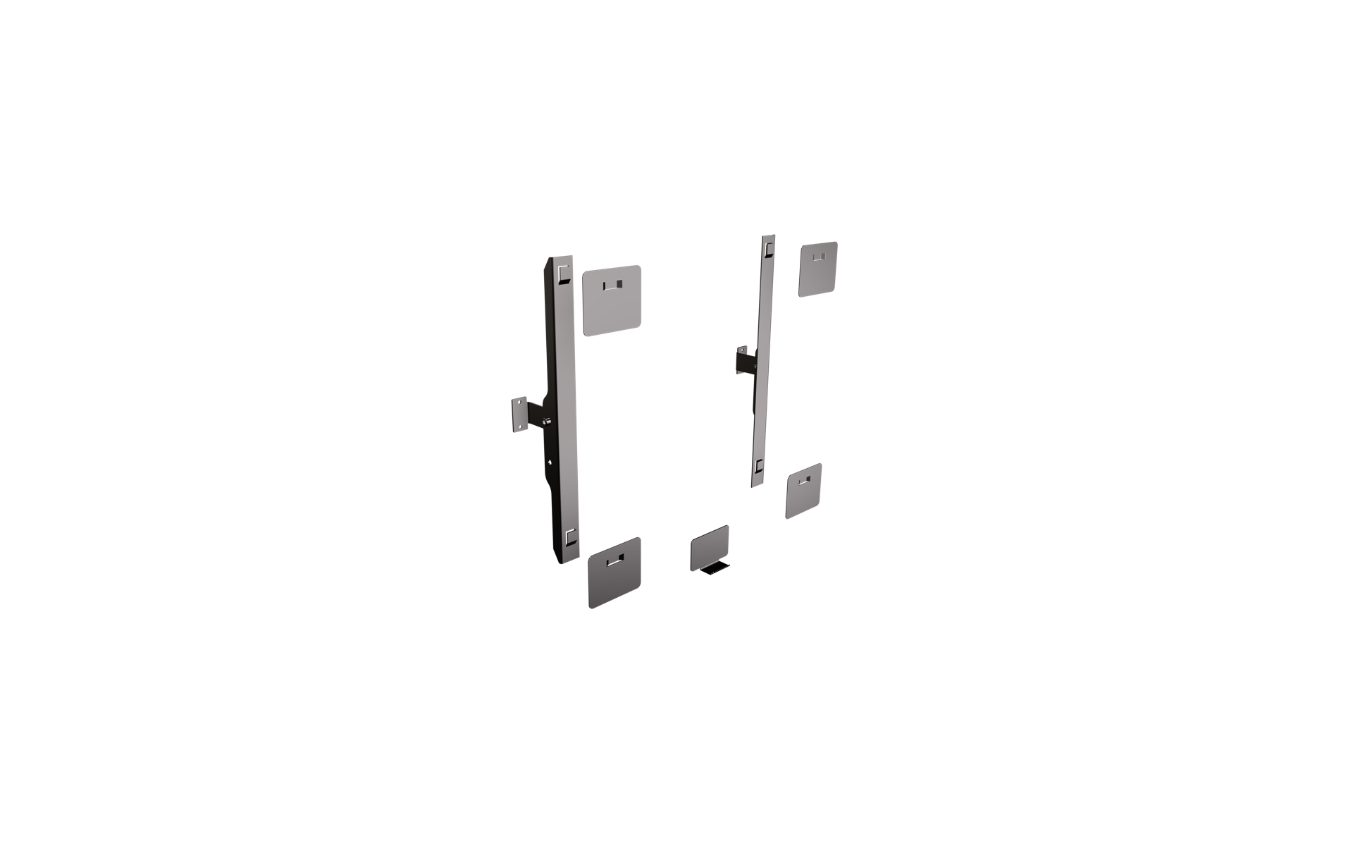 Zestaw zawiera uchylne uchwyty do lustra wraz z elementem mocowanym na dole lustra służącym do jego regulacji oraz 4 zawieszki. Cena nie zawiera lustra. Uchwyty, którymi lustro mocuje się do ściany, schowane są na tylnej stronie lustra, a po montażu widoczny jest tylko element do regulacji. Zawieszki stanowią komplet z uchwytami. Uchwyty dostosowane są do luster o minimalnej wysokości 45 cm.