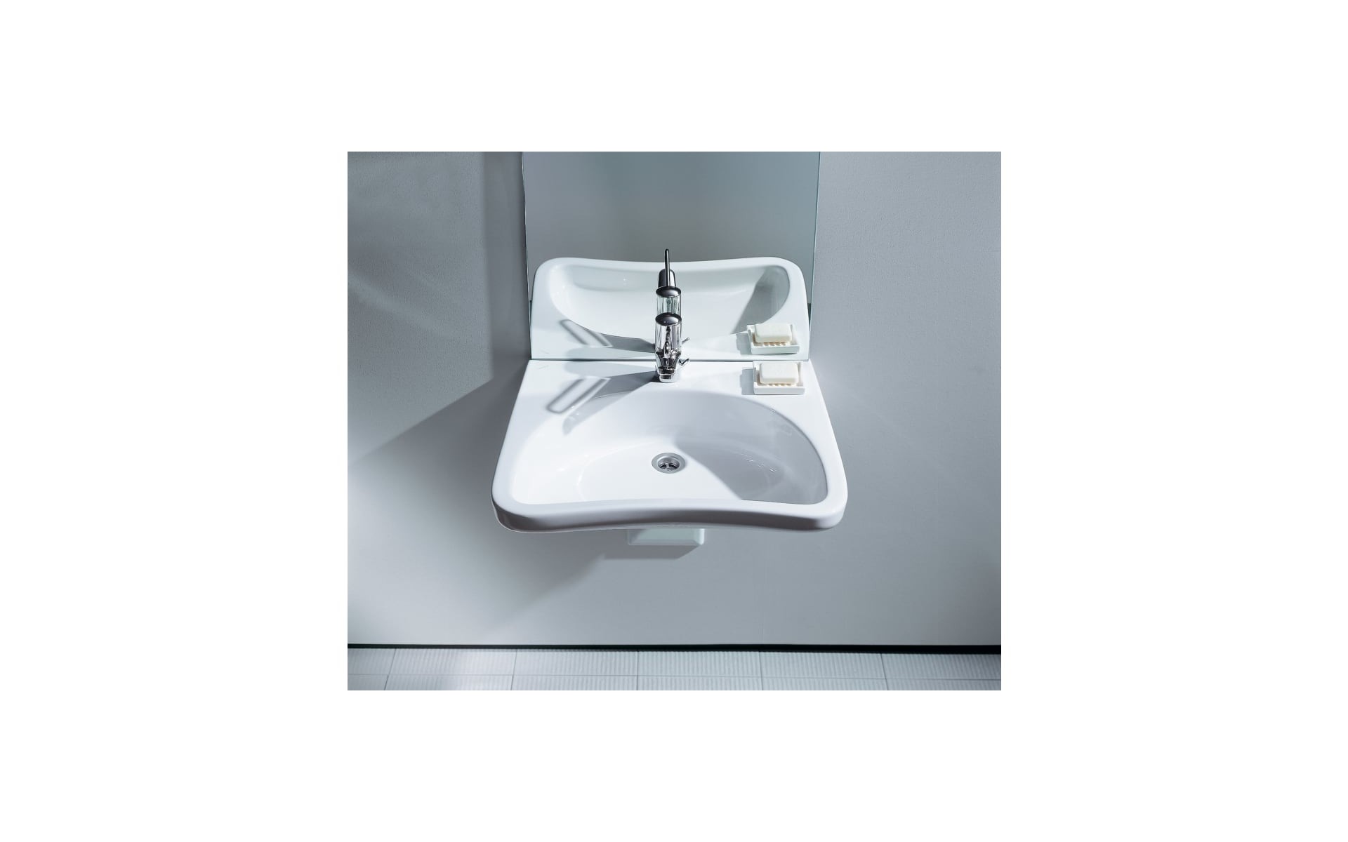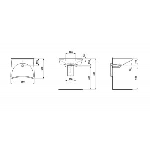Umywalka wisząca zaprojektowana z myślą o osobach z niepełnosprawnościami. Wymiary umywalki uwzględniają ogólne wytyczne dotyczące projektowania łazienek dla osób z ograniczeniami ruchowymi. Do kompletacji z umywalką rekomendowany jest syfon podtynkowy lub syfon oszczędzający miejsce.
