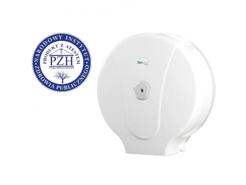 Pojemnik na papier toaletowy POP M to wytworzony z białego plastiku ABS naścienny dozownik, polecany do ogólnodostępnych toalet w szkołach, biurach czy gabinetach lekarskich. Posiada on atest PZH, który jest gwarancją jakości oraz potwierdzeniem wysokiego poziomu higieny. Dozownik papieru toaletowego POP M jest bardzo prosty w utrzymaniu czystości, a dzięki przeźroczystemu okienku, umożliwiającemu wygodne kontrolowanie aktualnego stanu papieru w środku, również niezwykle funkcjonalny. Jest to podajnik do rolek maxi Jumbo o średnicy do 29 cm. Dzięki uniwersalnemu wyglądowi i atrakcyjnej cenie dozownik POP M jest bardzo popularnym modelem.