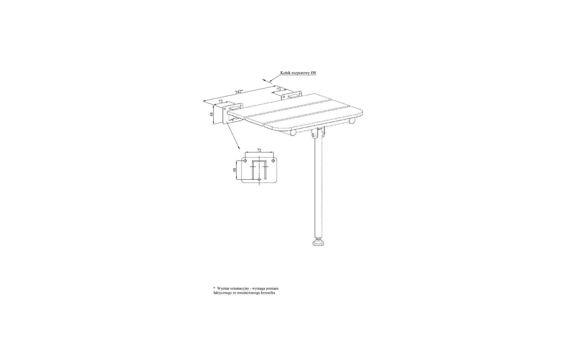 Produkt objęty 5-letnią gwarancją producenta. Zestaw montażowy w komplecie. Siedzisko jest łatwe w montażu oraz może zostać przytwierdzone do ściany na dowolnej wysokości, dopasowanej do wzrostu i sprawności użytkownika.