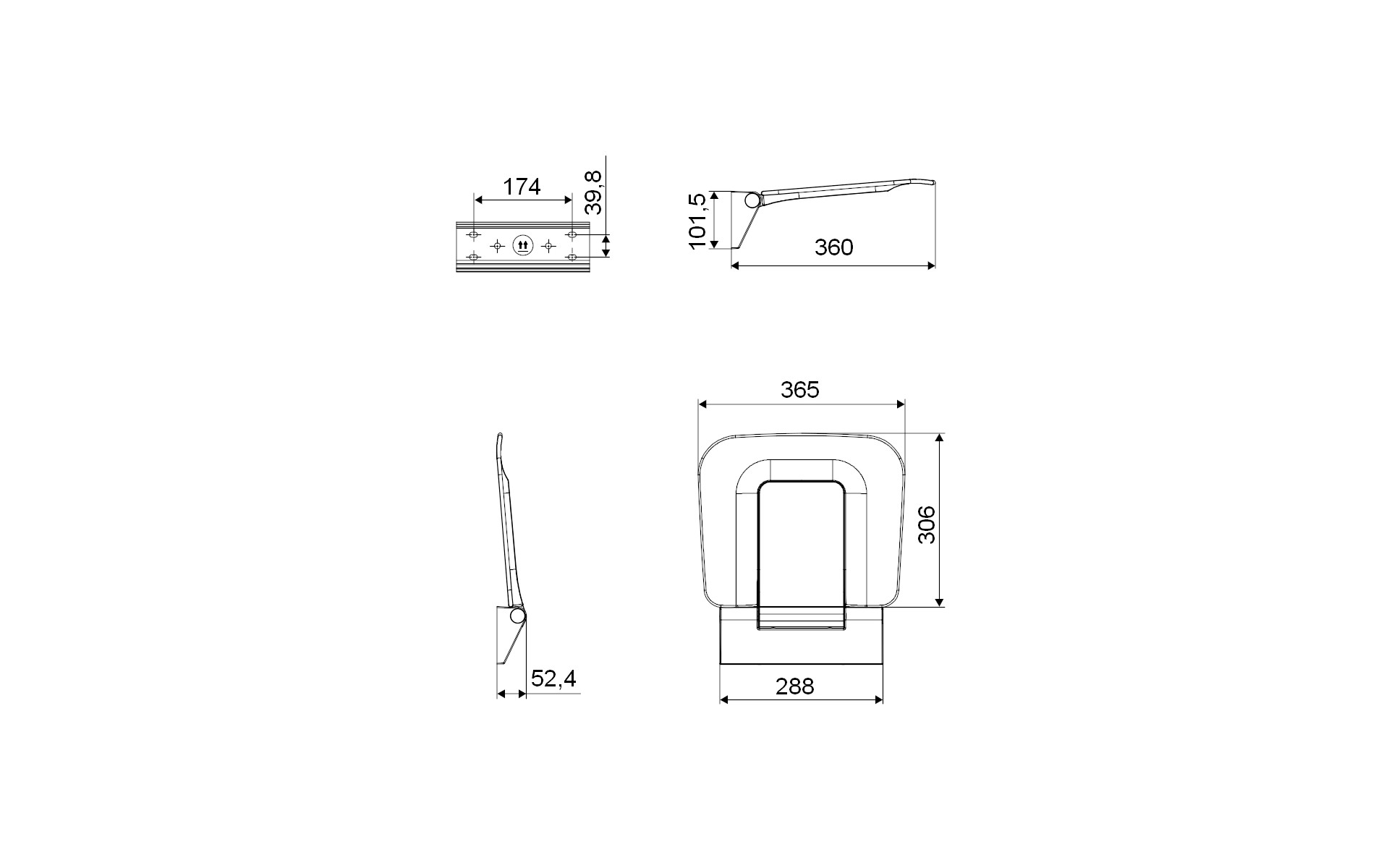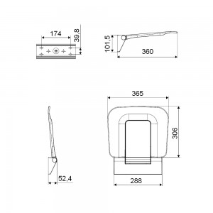 Profilowane siedzisko o wymiarach 36,5 na 30,6cm zostało wykonane z odpornego na zarysowania, trwałego i łatwego w czyszczeniu Duroplastu. Po złożeniu siedzisko zajmuje jedynie 5,2cm. Nowa wersja siedziska została wyposażona w mechanizm wolnoopadający, podobny do tego, który stosuje się w deskach sedesowych. Dodatkowo, w celu zapewnienia maksymalnego bezpieczeństwa i maksymalnego poziomu higieny, zastosowano powłokę antybakteryjną Safe Control, która zapobiega osadzaniu się na powierzchni siedziska komórek bakterii