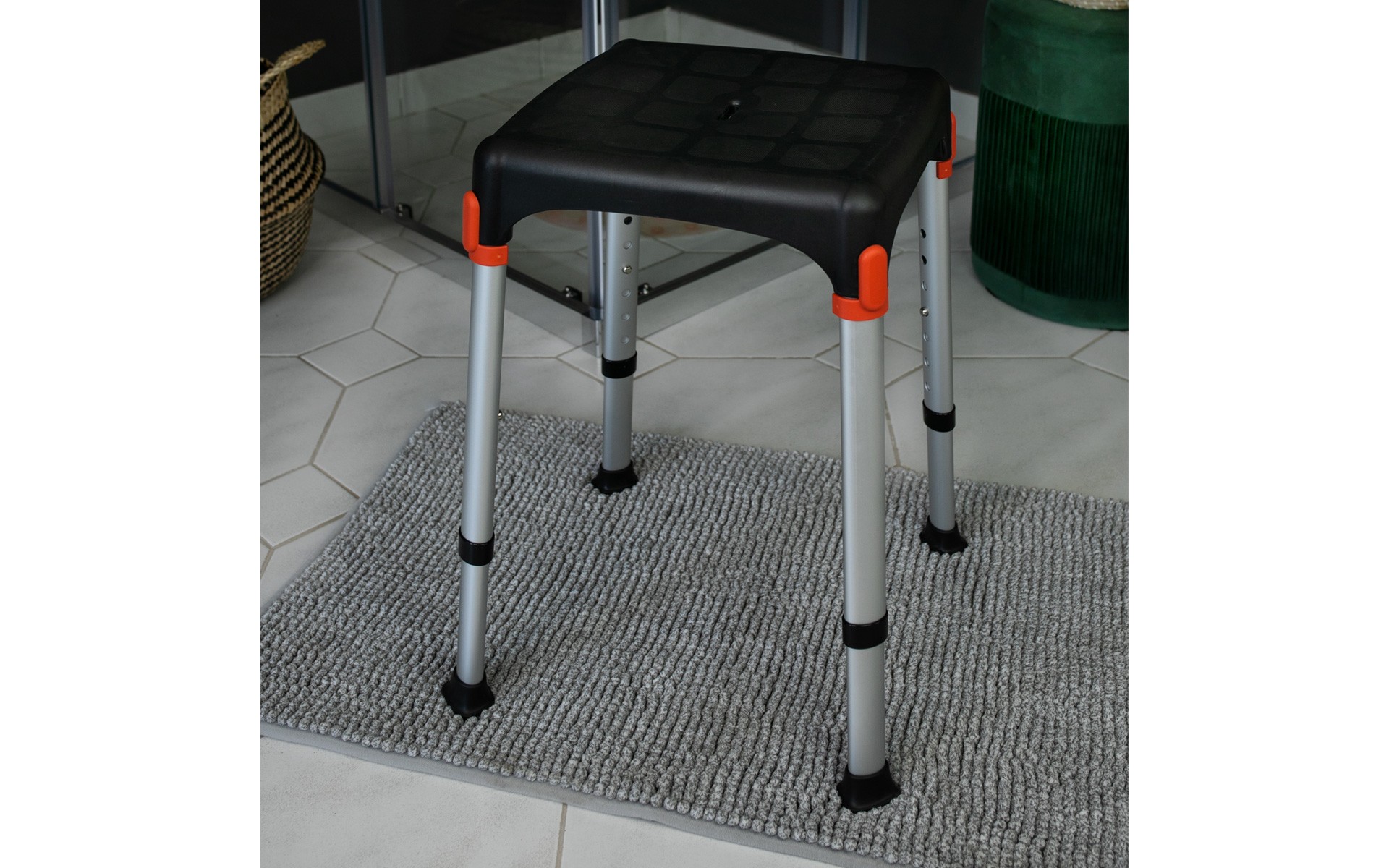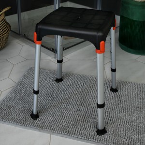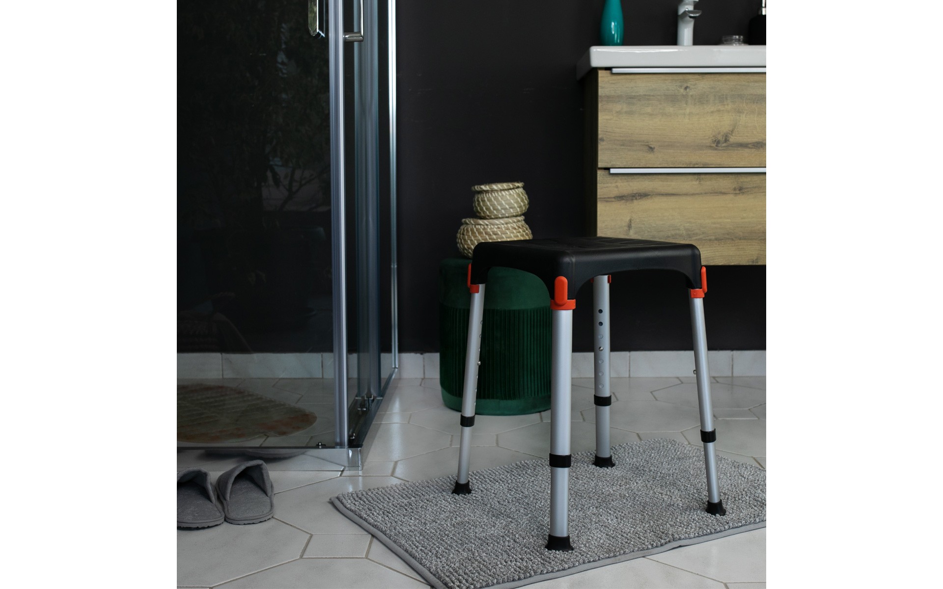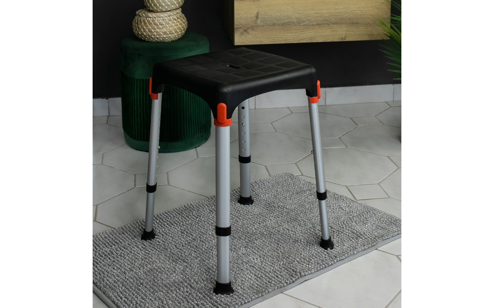 Zastosowane tworzywo w kolorze białym zostało pokryte antypoślizgową powierzchnią. Jest ono ciepłe i miłe w dotyku, co zapewnia pozytywne wrażenia z użytkowania. Regulacja wysokości pozwala dopasować taboret prysznicowy do wzrostu i potrzeb użytkownika. Antypoślizgowe nakładki zapobiegają przesuwaniu się taboretu oraz porysowaniu powierzchni wanny lub brodzika.
