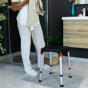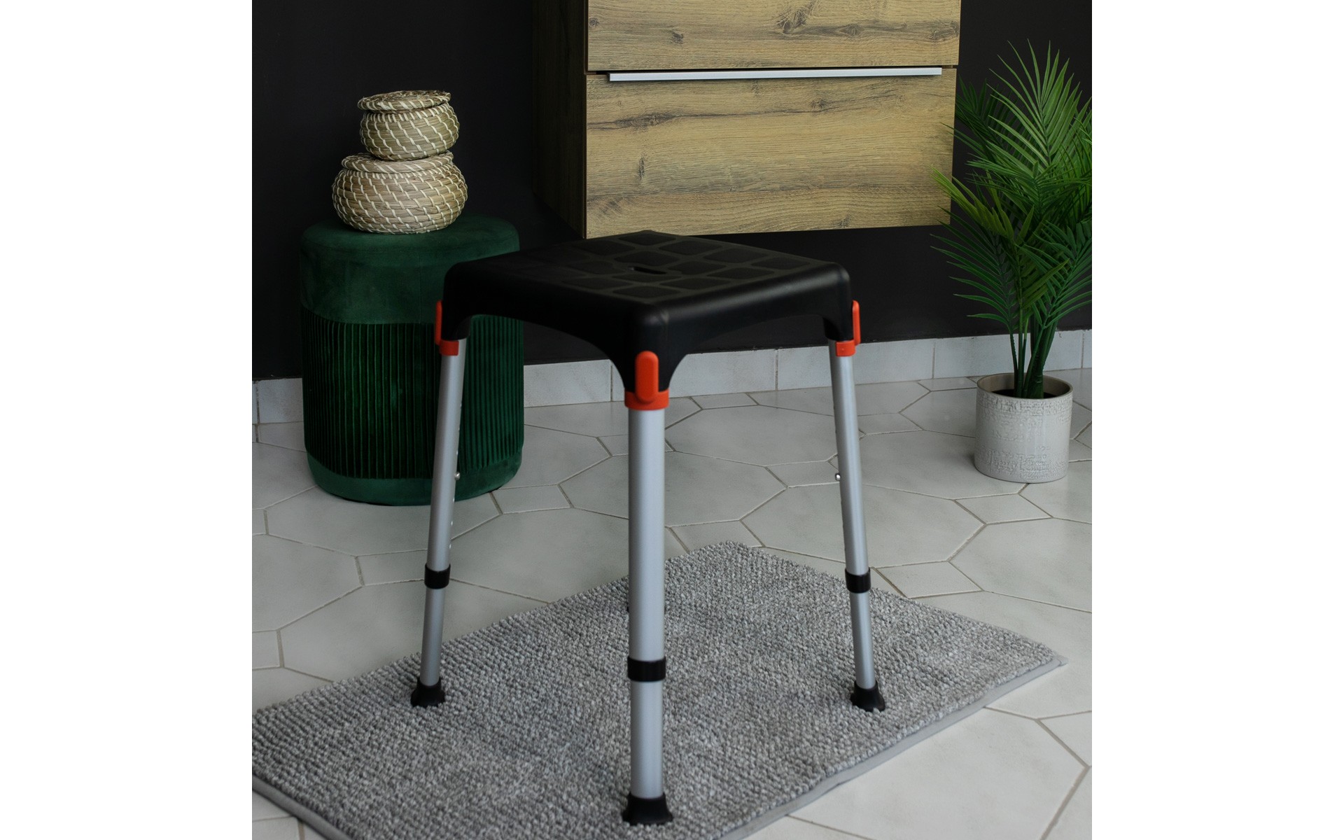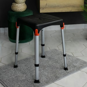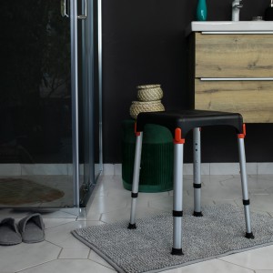Taboret kwadratowy pod prysznic TIMAGO został wykonany z aluminium oraz tworzyw sztucznych. Aluminiowa rama zapewnia, że taboret nie zacznie rdzewieć. Ponadto jest on niezwykle wytrzymały - dopuszczalne maksymalne obciążenie taboretu wynosi 150kg.