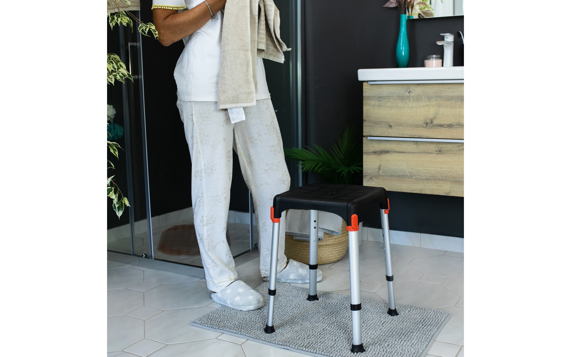 Taboret prysznicowy kwadratowy firmy TIMAGO pozwala wygodniej korzystać z wanny lub prysznica osobom o obniżonej sprawności ruchowej. Cechuje go wysoka jakość wykonania i solidna, wytrzymała konstrukcja.