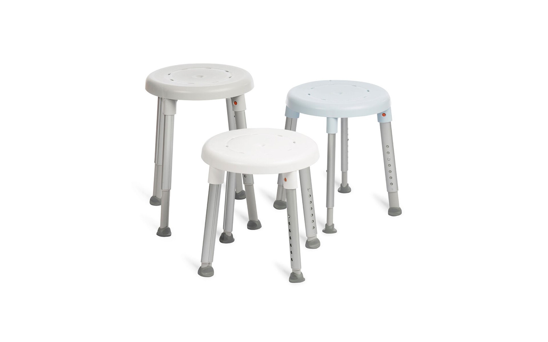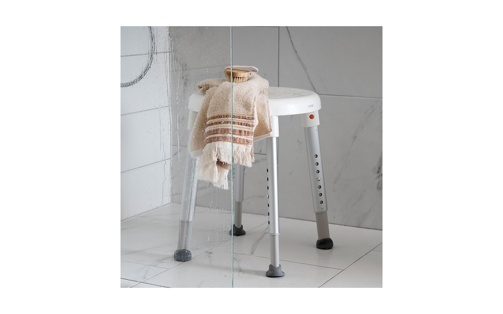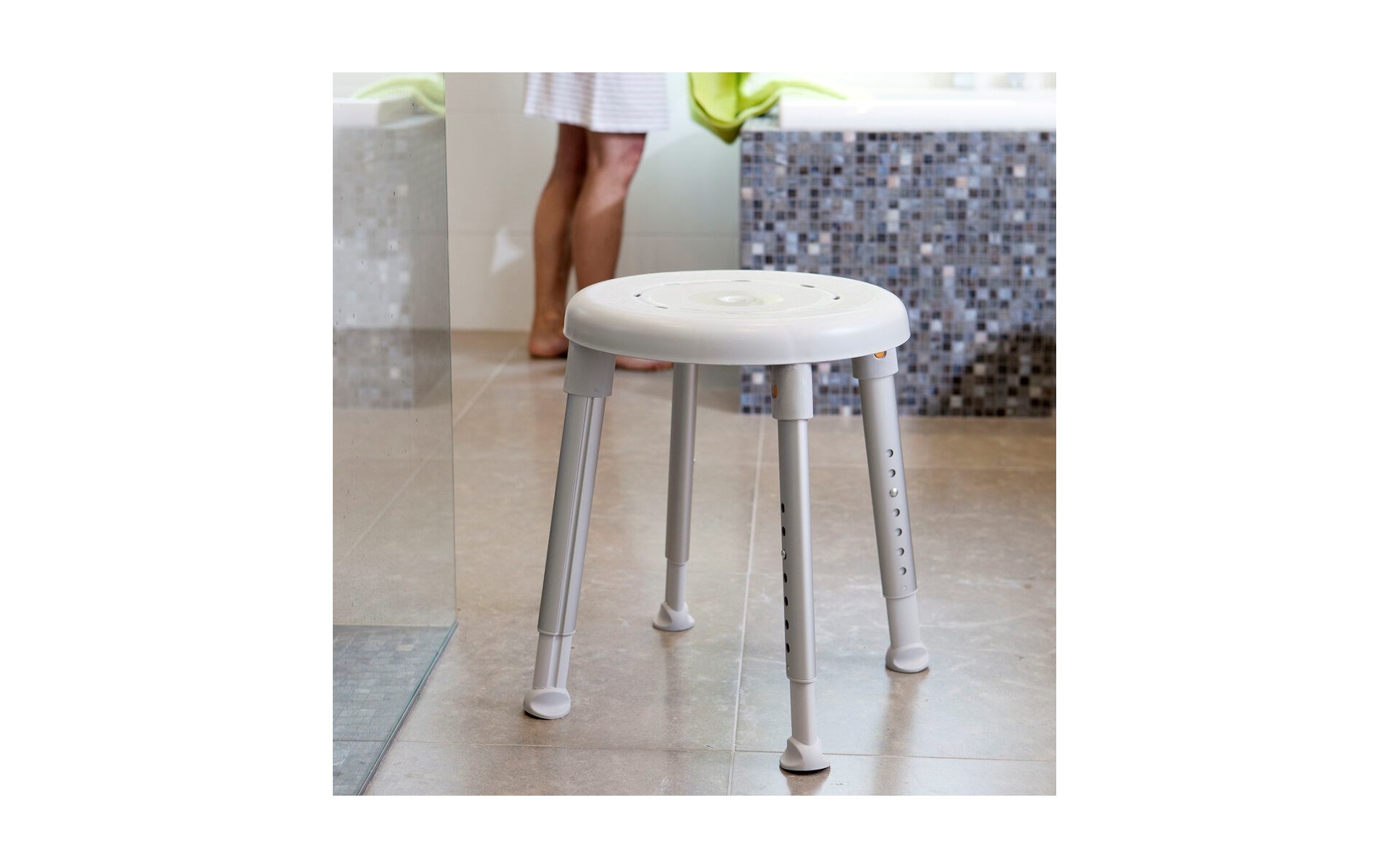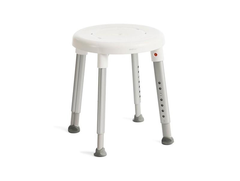 Specjalnie wykonane nóżki ułatwiają regulację wysokości taboretu, która jest łatwa jak nigdy dotąd. Innowacyjny kształt nakładek antypoślizgowych sprawia, że taboret bardzo pewnie trzyma się podłoża. Okrągłe, szerokie siedzisko posiada otwory odpływowe oraz powierzchnię antypoślizgową. Nóżki rozchodzą się na zewnątrz, dzięki czemu taboret jest bardzo stabilny. Nóżki umożliwiają również bezpieczne ustawienie taboretu w pozycji nachylonej, co znacznie ułatwia wstawanie.