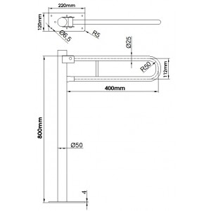 Uchwyt uchylny wolnostojący do WC 40cm dla osób niepełnosprawnych