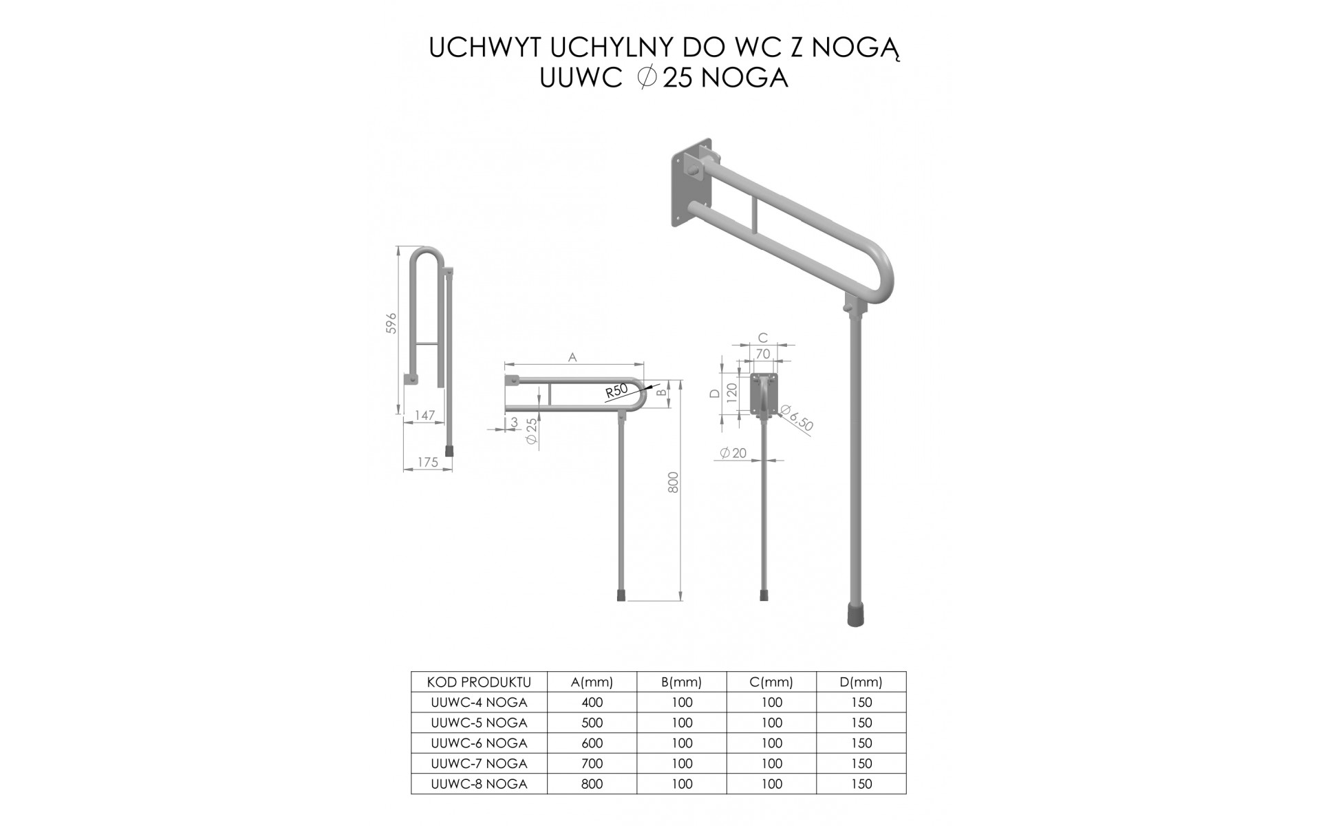 Poręcz uchylna z nogą, ułatwiająca korzystanie z WC - opis produktu