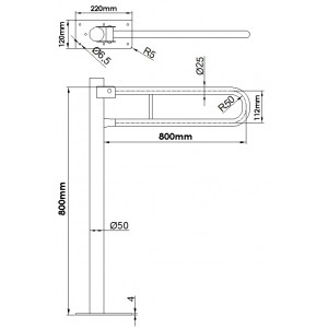 Uchwyt uchylny wolnostojący do WC 80cm dla osób niepełnosprawnych