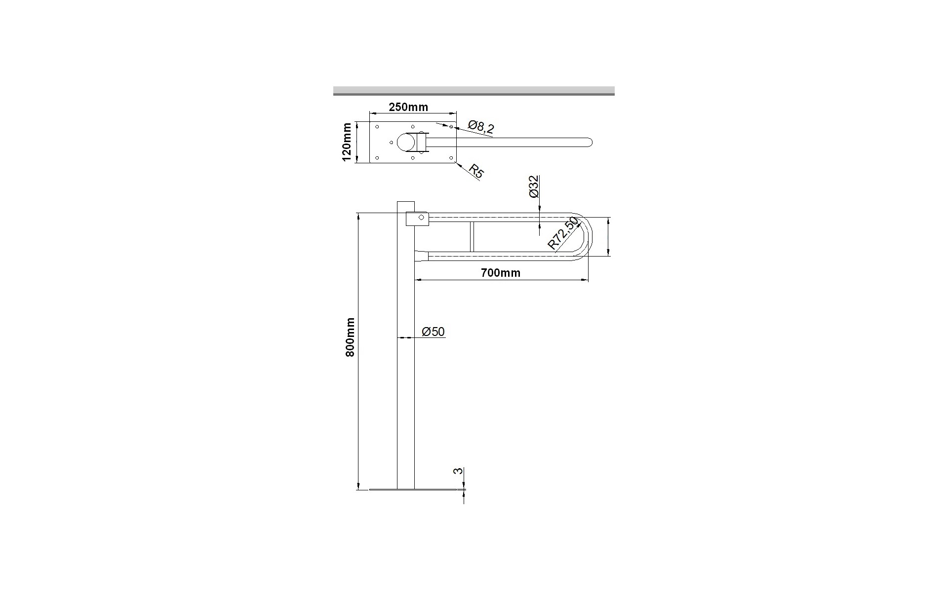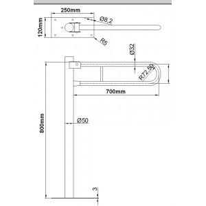 Uchwyt uchylny wolnostojący do WC 70cm dla osób niepełnosprawnych