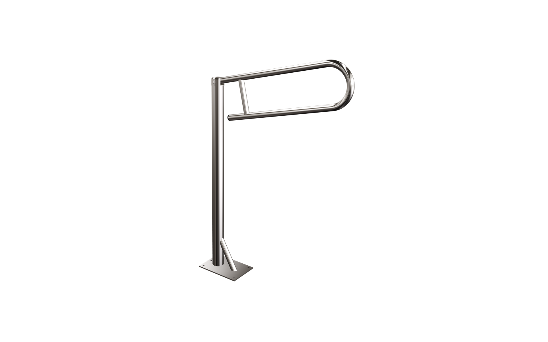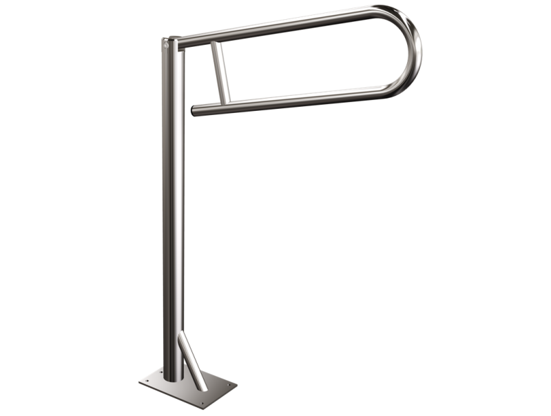 Uchwyty wolnostojące, montowane do podłogi, stosujemy w sytuacji, gdy nie ma możliwości montażu uchwytu naściennego, np. z powodu nieprzystosowanej do montażu poręczy zabudowy z płyt GK. Uchwyt uchylny pozwala oszczędzać miejsce w łazience, ale jego kluczowym przeznaczeniem jest umożliwienie swobodnego przesiadania się na miskę toaletową osobom poruszającym się na wózkach.