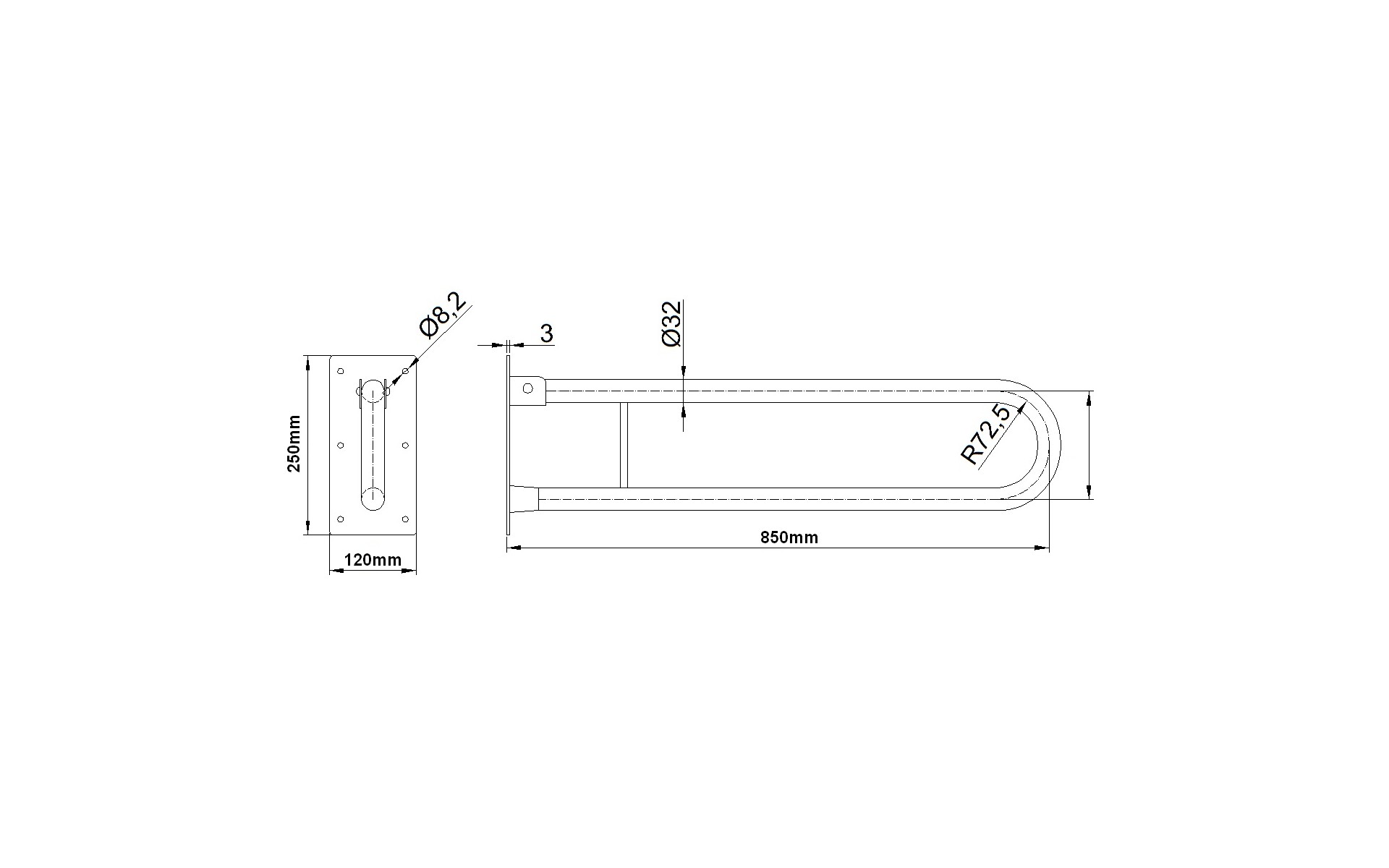Uchwyt uchylny do WC 60cm dla osób niepełnosprawnych