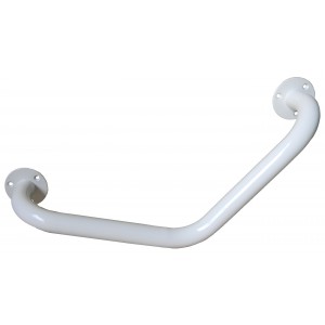 Uchwyt został wykonany ze stali węglowej malowanej proszkowo na kolor biały. Gładka powierzchnia minimalizuje ilość brudu gromadzącego się na uchwycie, dzięki czemu jest on łatwiejszy w utrzymaniu w czystości. Uchwyt kątowy może być także dezynfekowany za pomocą takich środków jak Incidin Plus, Incidur, Medi-Sept.