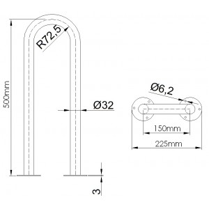 Uchwyt umywalkowy na blasze 50cm - stal nierdzewna, 25mm