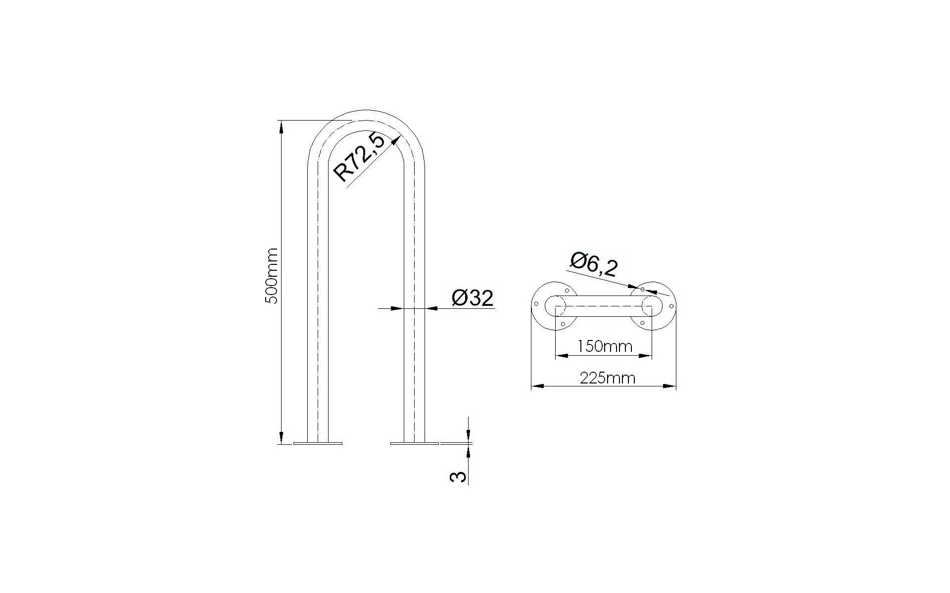 Uchwyt umywalkowy na blasze 85cm - stal nierdzewna, 32mm