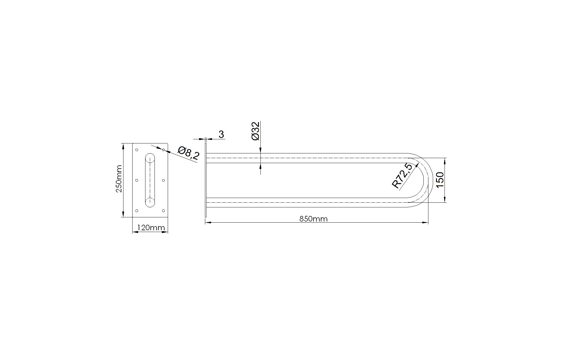 Uchwyt umywalkowy na blasze 75cm dla osób niepełnosprawnych