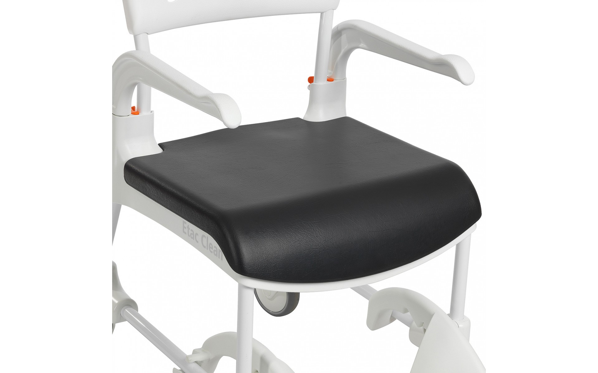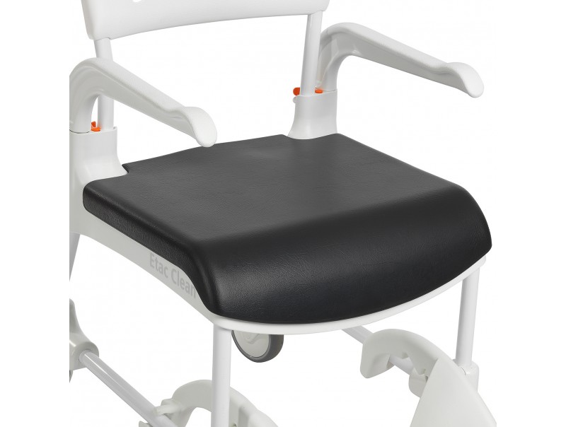 Pełna nakładka na siedzisko do wózków Etac Clean. Sprawia, że siedzisko staje się bardziej miękkie i komfortowe - polecane osobom szczupłym z RZS lub wrodzoną łamliwością kości. Zakrywa cały otwór higieniczny. Wykonana z formowanego poliuretanu.