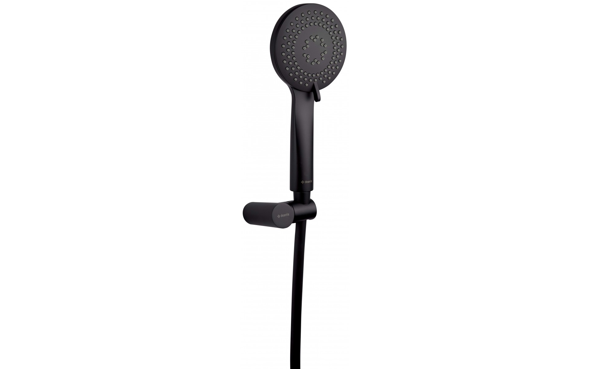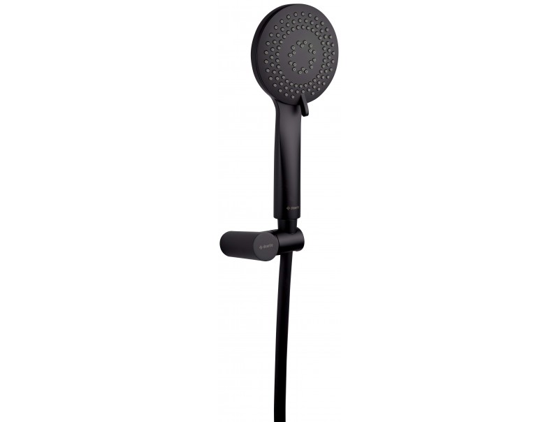 Zestaw w kolorze głębokiej matowej czerni z powłoką, dzięki której nie pozostają na nim odciski palców. Zestaw natryskowy 3-funkcyjny Arnika składa się z: