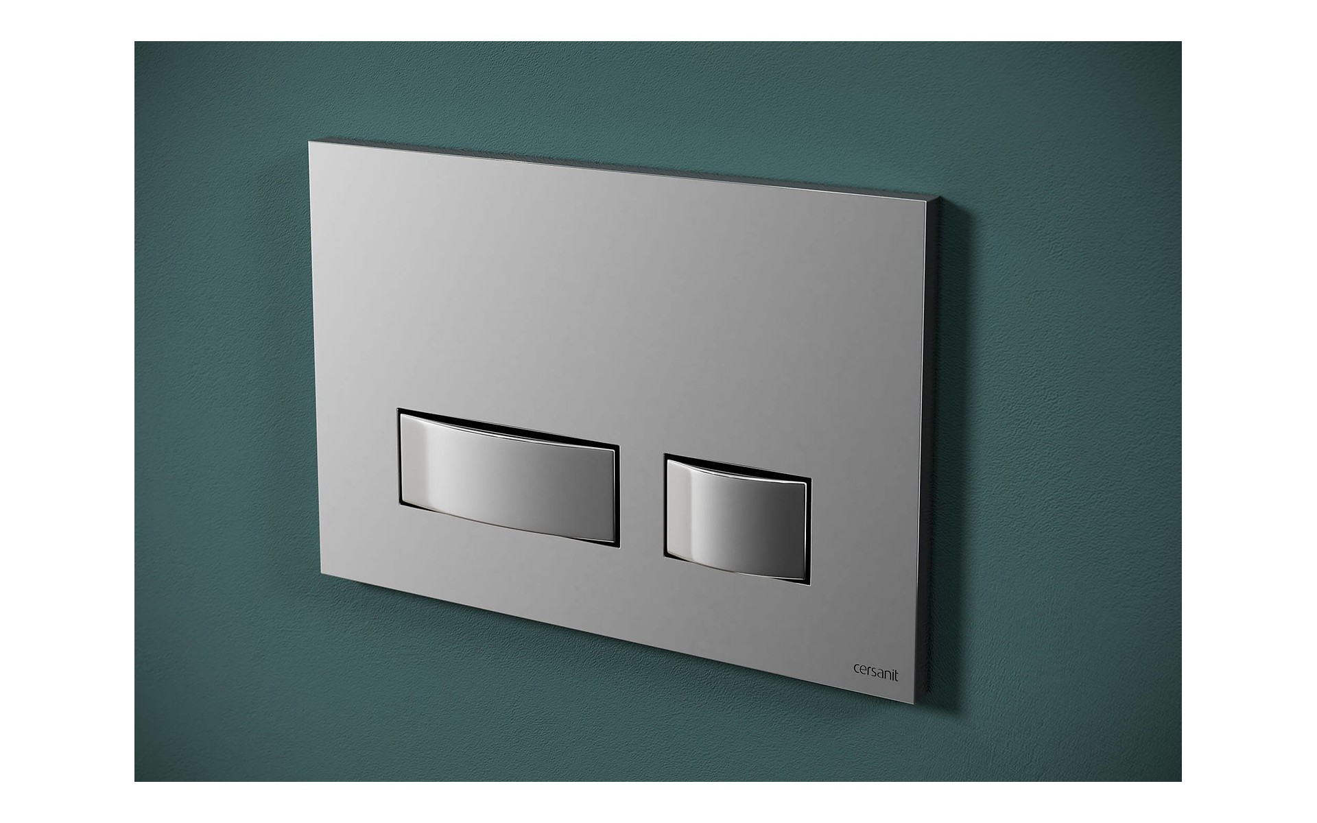 Przycisk MOVI  II to uniwersalna propozycja do nowoczesnych i eleganckich wnętrz. Kanciaste kształty będą pasować stylistycznie do prostych linii ceramiki bądź mebli łazienkowych. Przycisk przystosowano do dwudzielnego, oszczędnego systemu spłukiwania. Przycisk pasuje do mechanicznych stelaży podtynkowych AQUA i SYSTEM (K97-524; K97-526; K97-525). Współpracuje z FRESH SYSTEM, który jest idealnym rozwiązaniem w powiązaniu z bezkołnierzową technologią CleanOn, gdzie brak kołnierza nie wyklucza stosowania środków odświeżających.